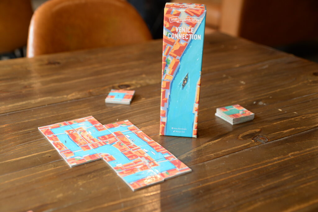 ゲームデザイナー、アレクサンダー・ランドルフが手掛けた作品です。1対1の2名専用ゲームで、運河タイルを交互に配置し、ループを完成させたプレイヤーの勝利となります。また、ループ完成不可であると判断した場合、それを宣言する事でも勝利となります。完成させたいけど、完成されたくない。このギリギリの駆け引きがたまらないリプレイ性を生み出しています。